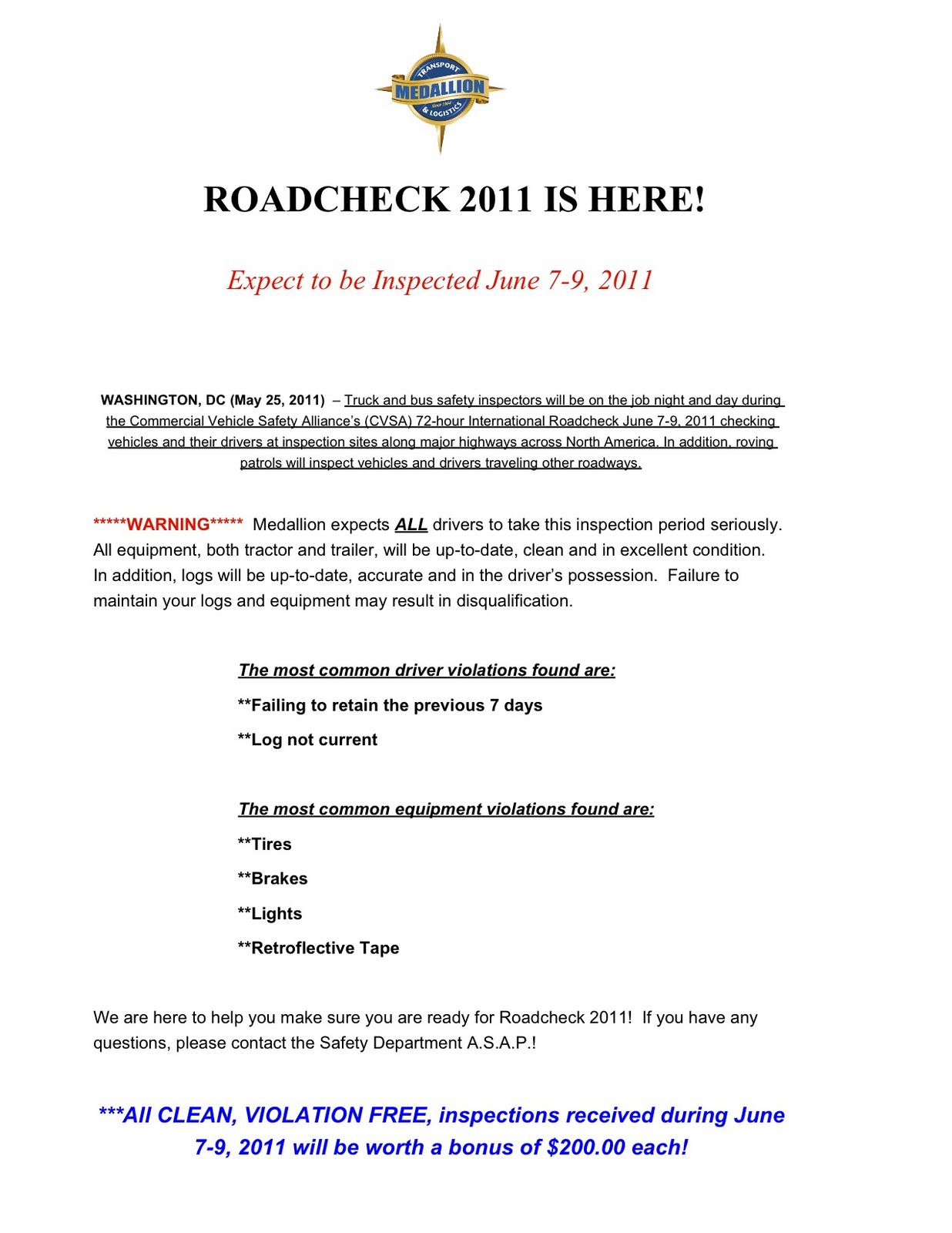Roadcheck 2011 MEMO